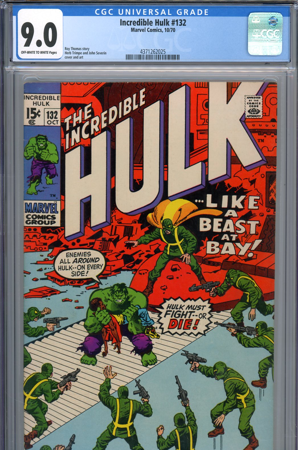 Incredible Hulk #132 CGC graded 9.0 Hydra cover and art