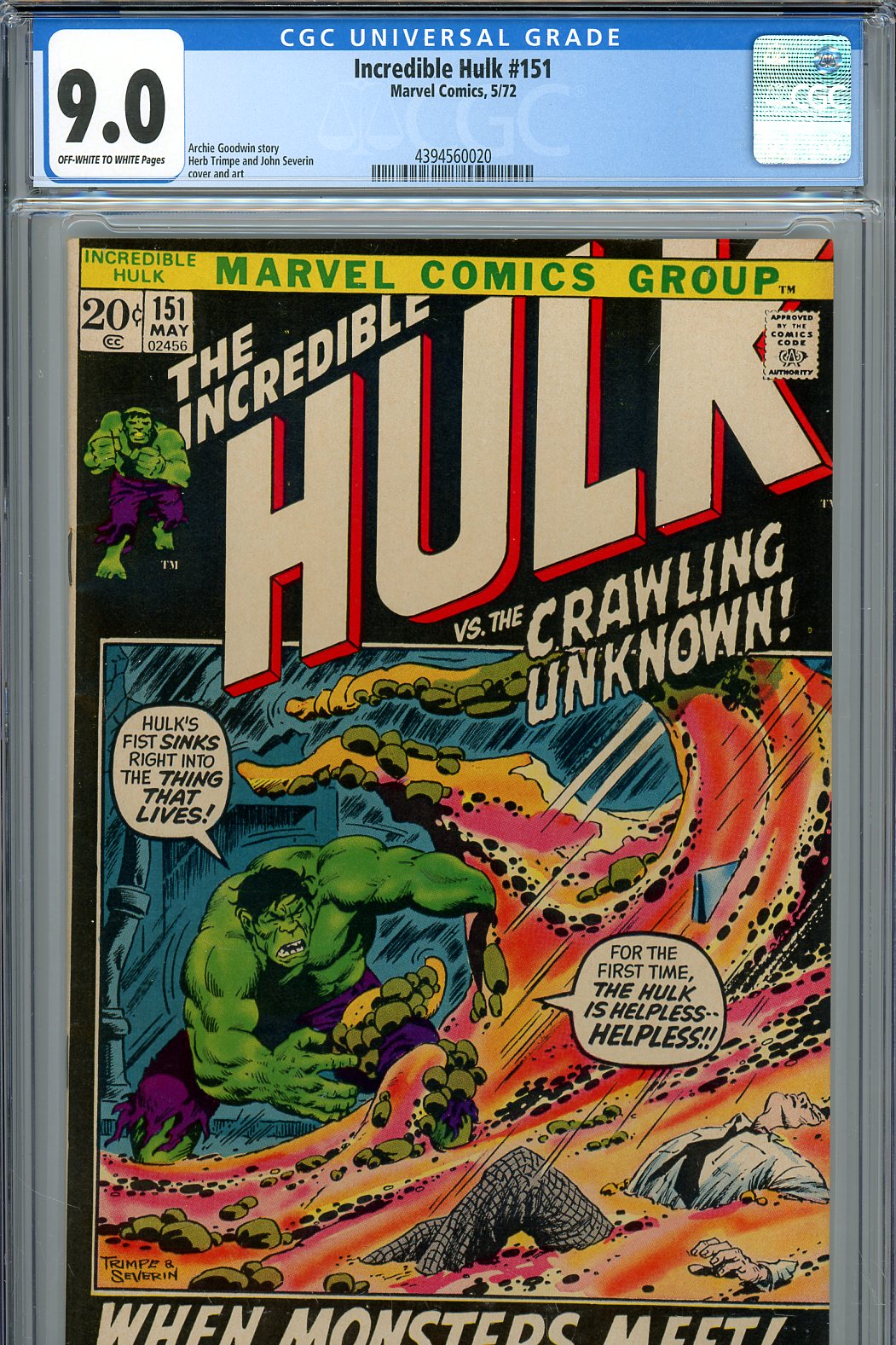 Incredible Hulk #151 CGC 9.0 - Herb Trimpe and John Severin cover and art