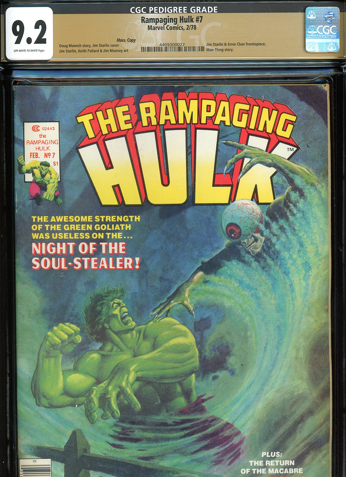 Rampaging Hulk #7 CGC graded 9.2 - Starlin cover and art Man-Thing story PEDIGREE